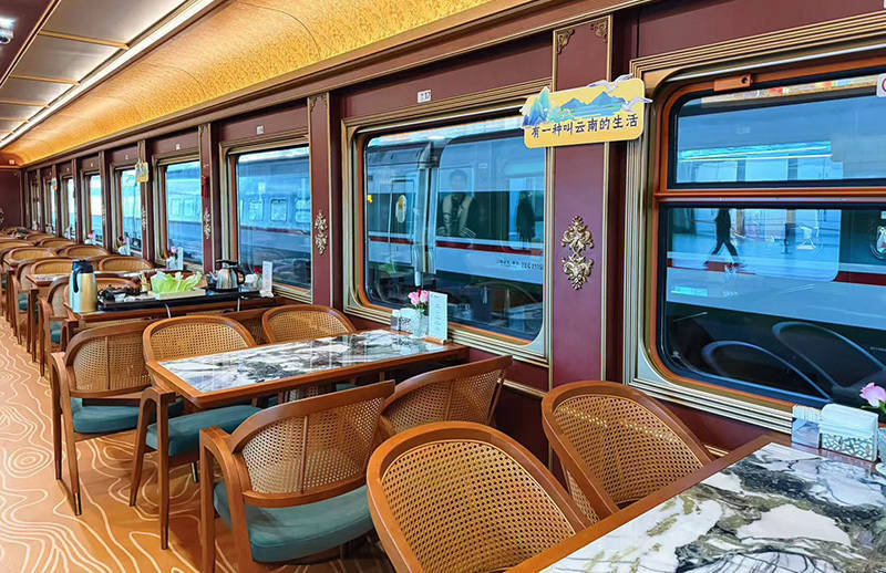 “彩云之南·昆明号”中老铁路舒适型跨境旅游专列。