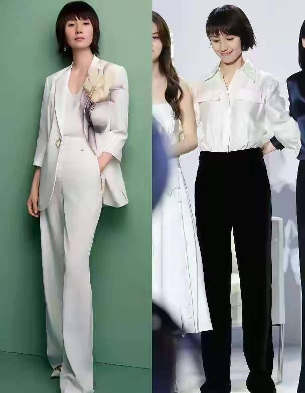 如果是在都市上班的精英女性,我们还可以选一套高腰收腰款的西服来穿搭,我上齐肩短发造型,就可以让你变得很干净。