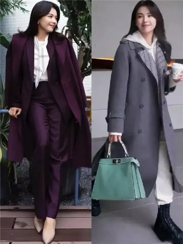 你的穿搭也要大气才行,这时候我们可以走轻熟风,比如用一件紫色大衣,内搭紫色的西服套装,叠穿一件白T恤,就要穿浅口高跟单鞋就够。