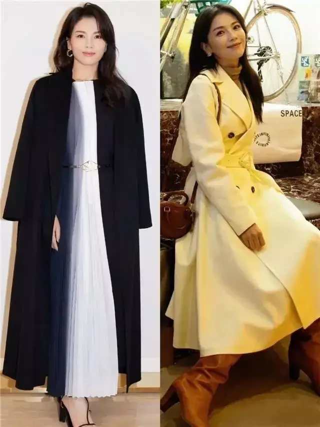 我们可以选择一件非常基础的黑色大衣,内搭一件白色的连衣裙,就穿一双高跟鞋,结合大波浪的卷发造型和精致的妆容,这样的搭配想不变美都难。